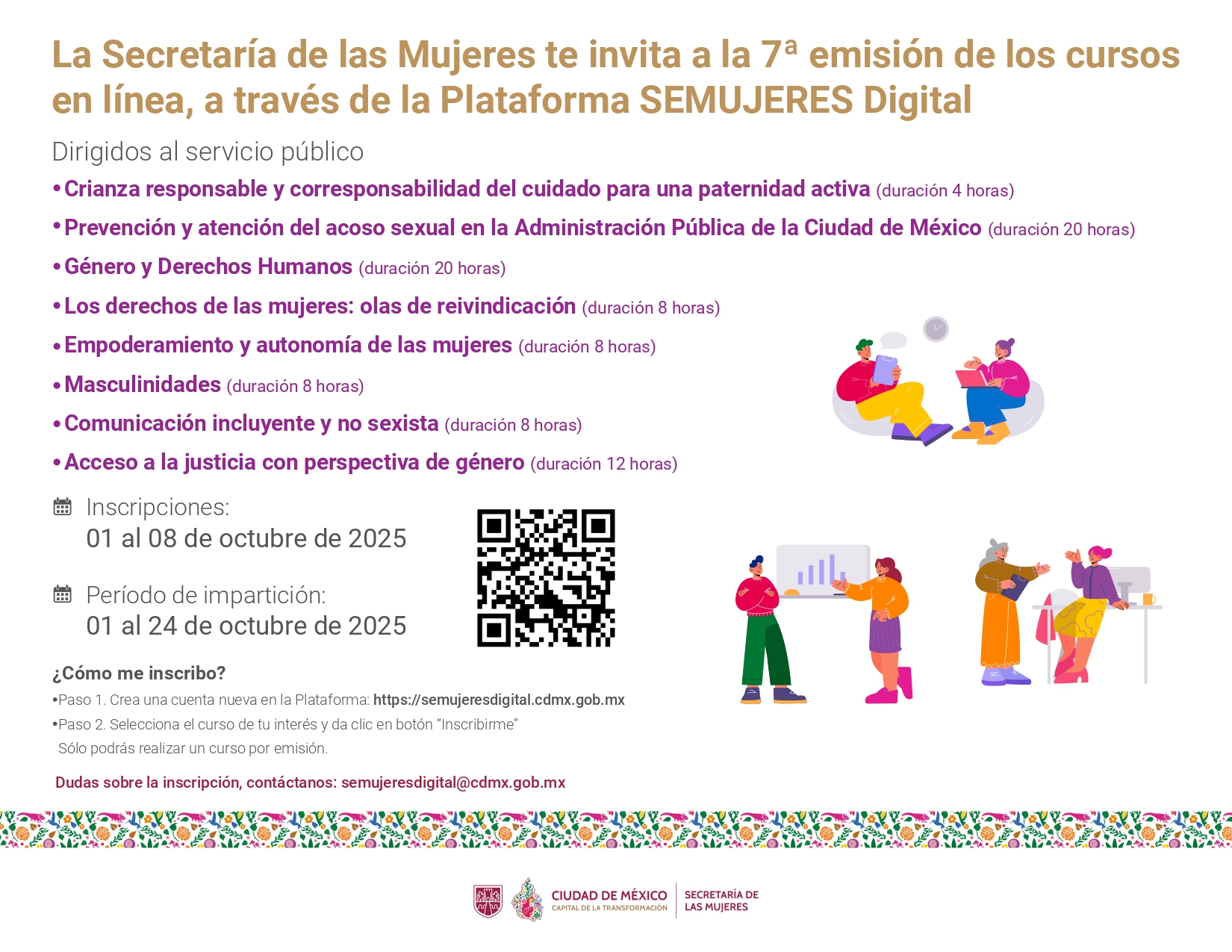Servidoras y servidores públicos, esta es tu oportunidad para capacitarte con la 7ª Emisión de Cursos en Línea a través de la Plataforma SEMUJERES Digital.