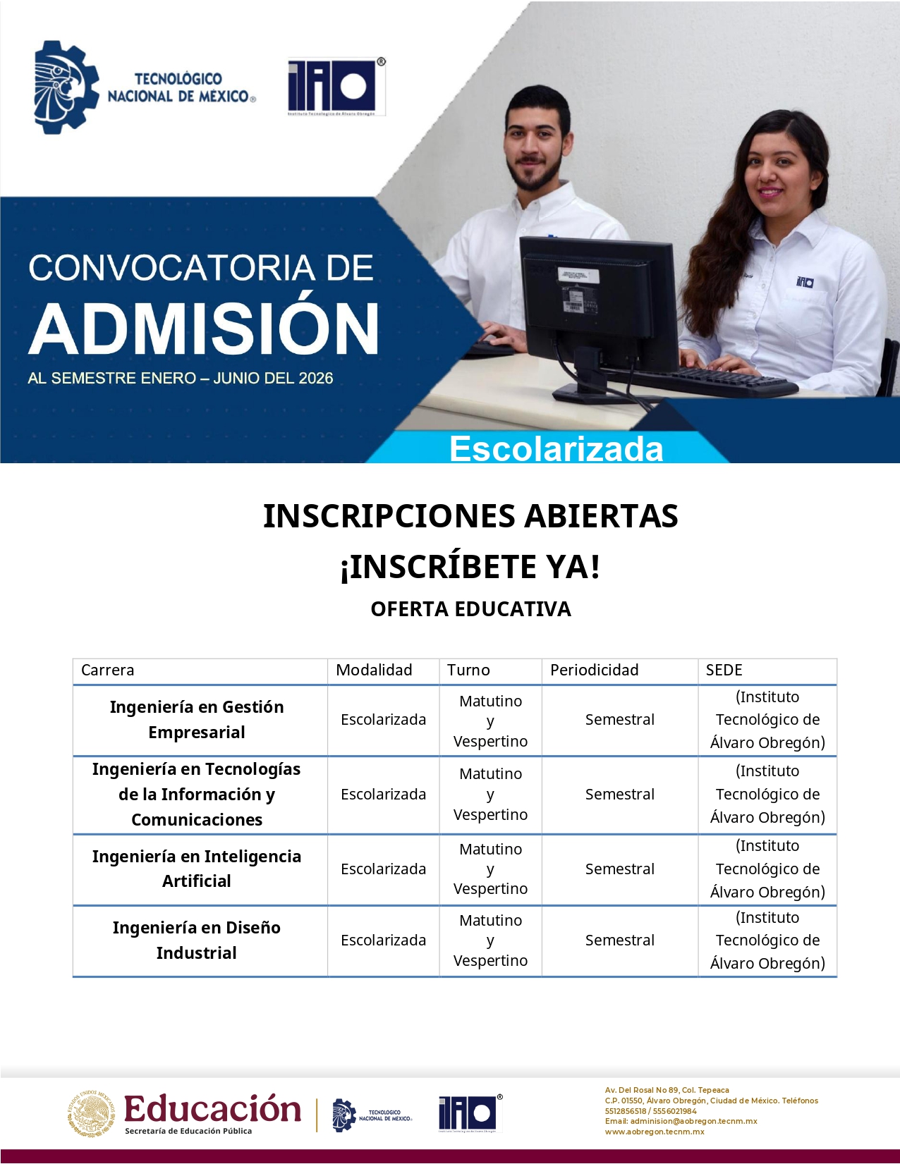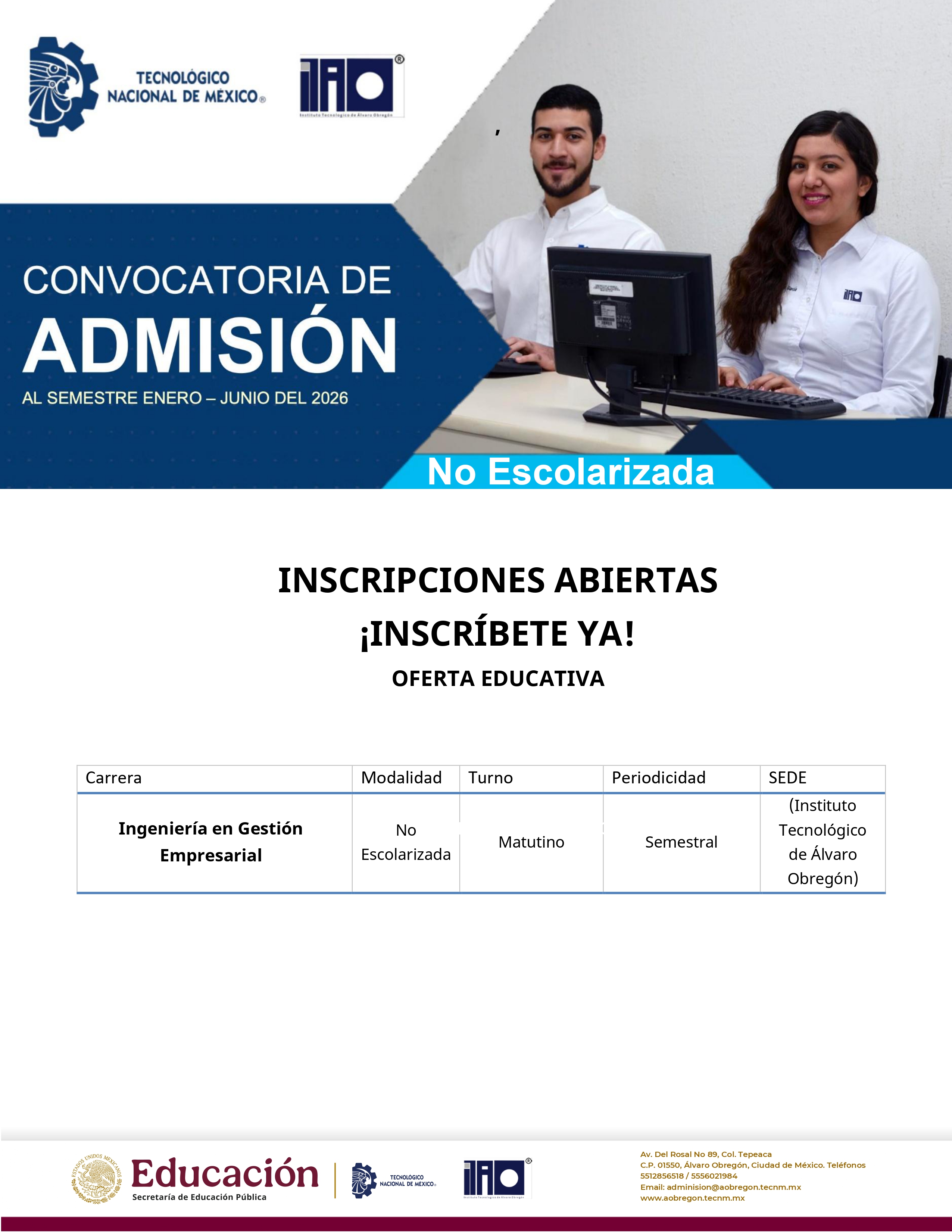 Convocatoria Enero – Junio 2026 en el Instituto Tecnológico de Álvaro Obregón