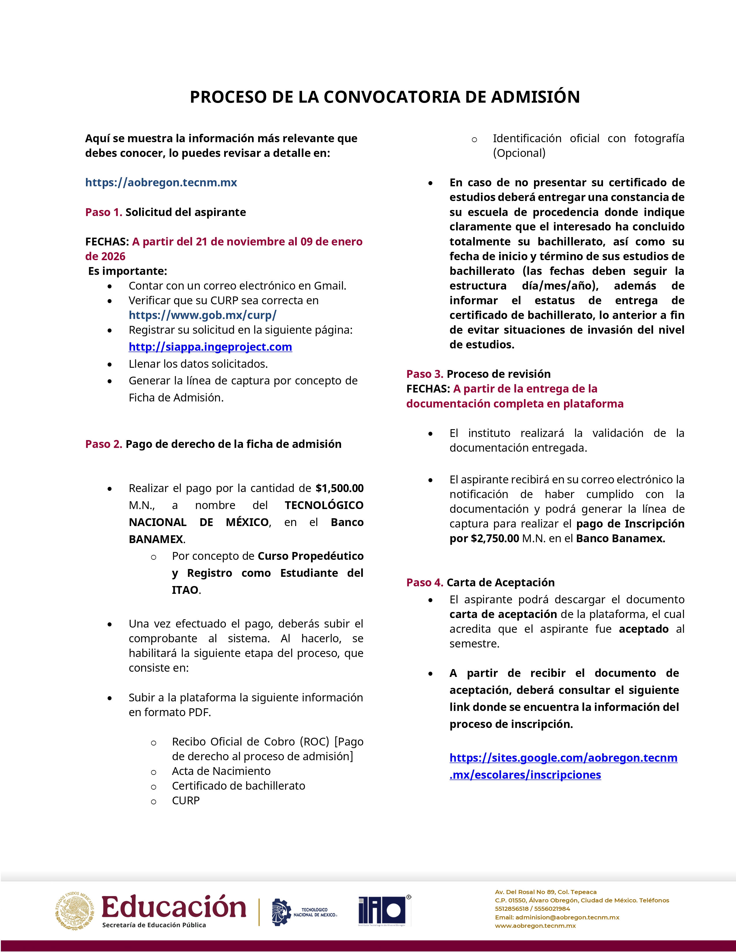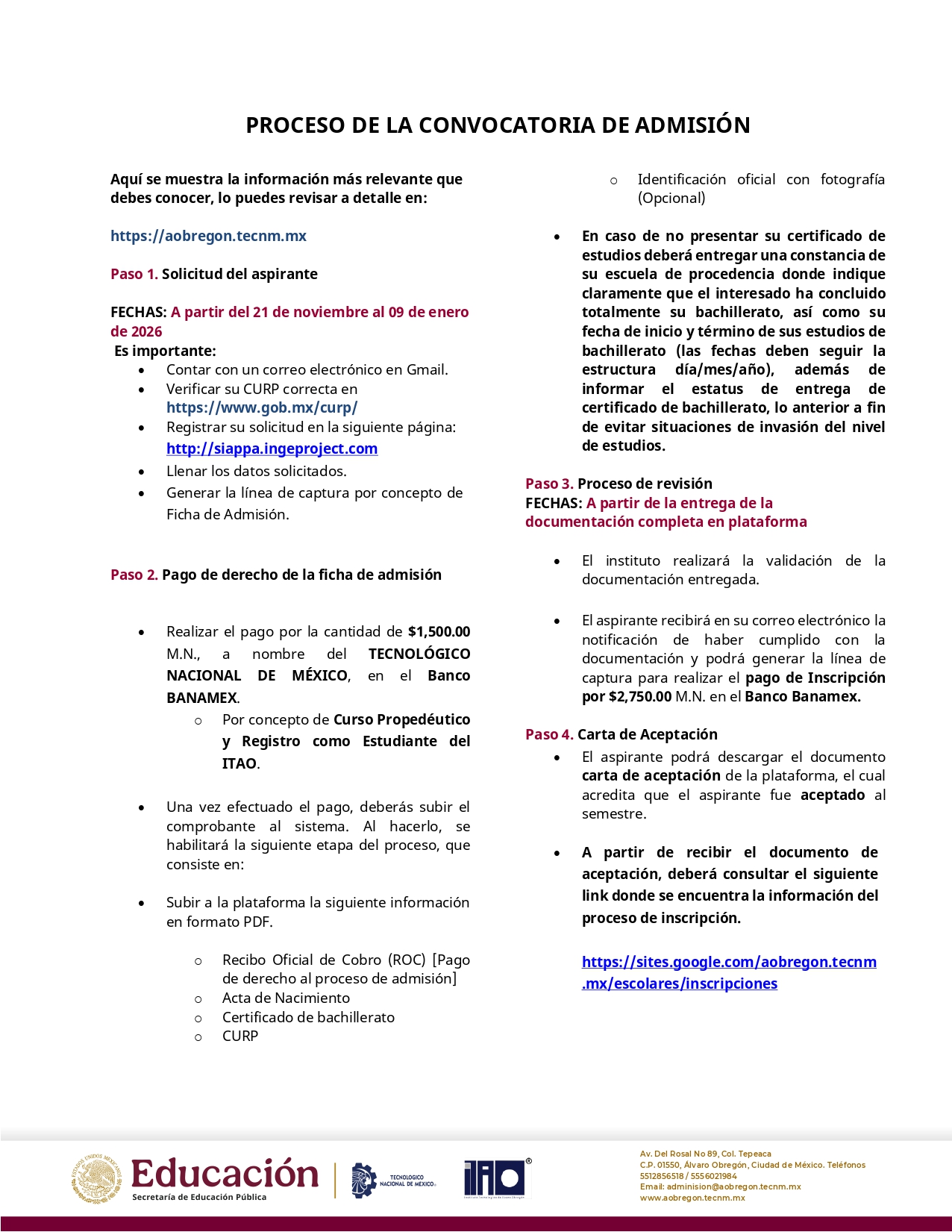 Para conocer el detalle de todos los requisitos y pasos del proceso, visita nuestro sitio web: https://aobregon.tecnm.mx