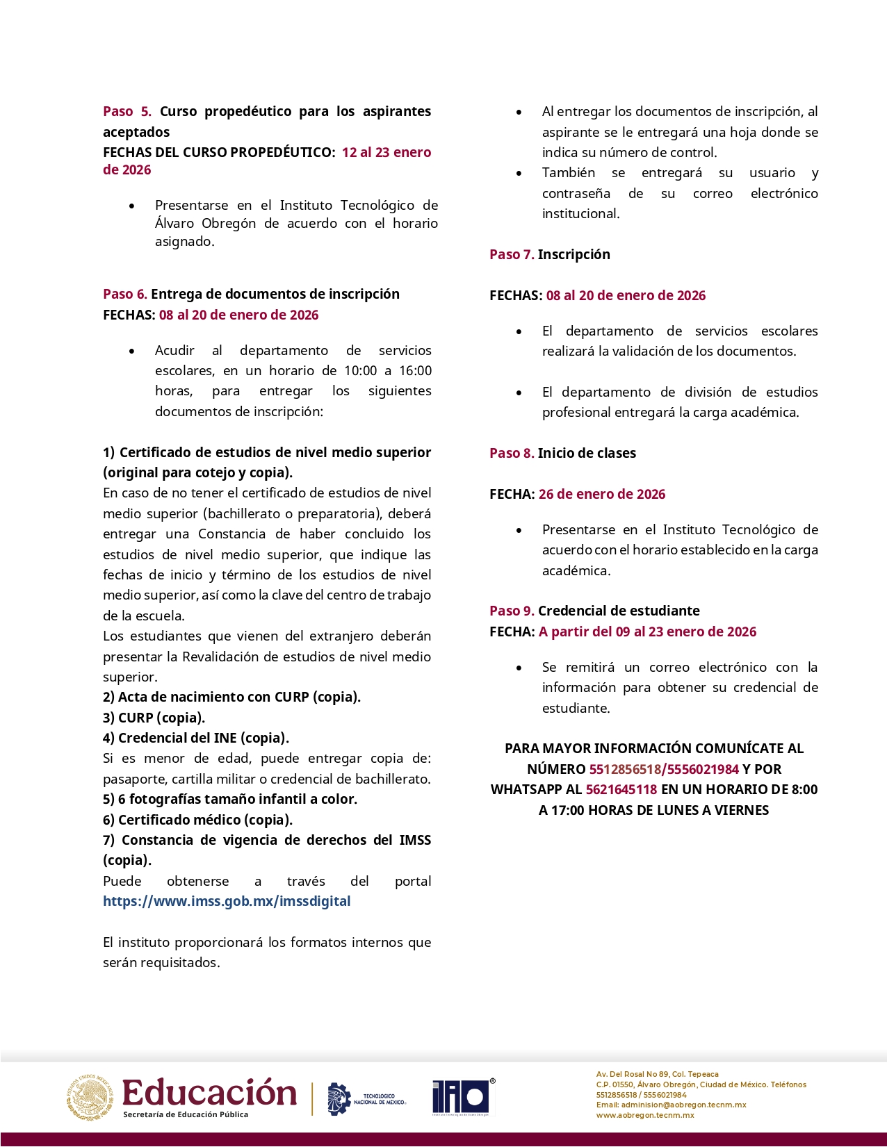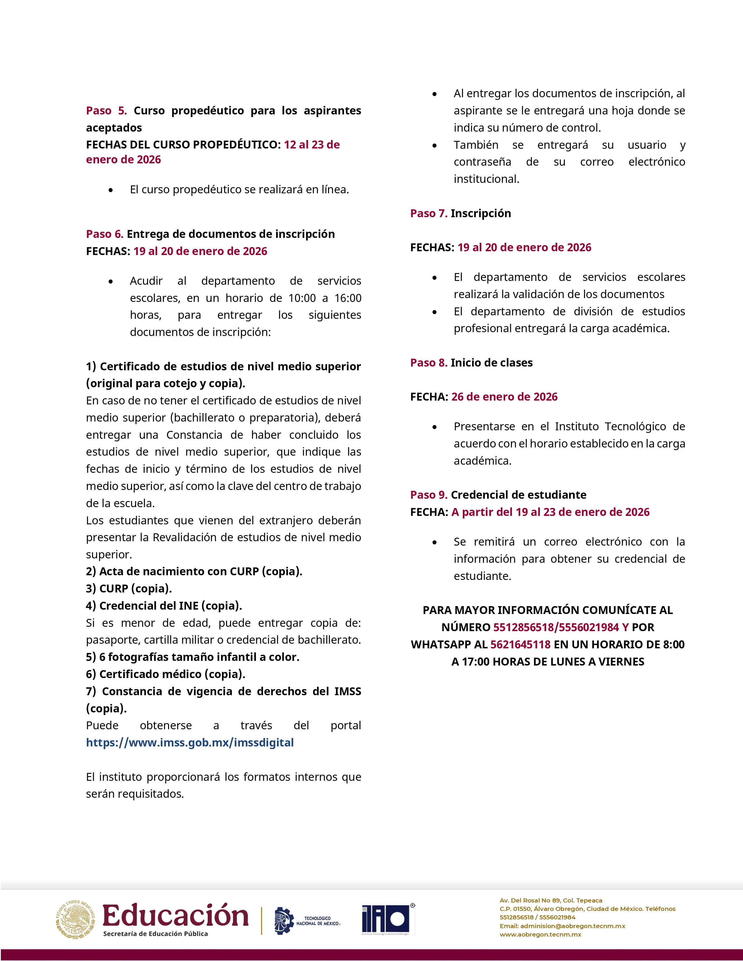 Paso 8. Inicio de Clases: 26 de enero de 2026.