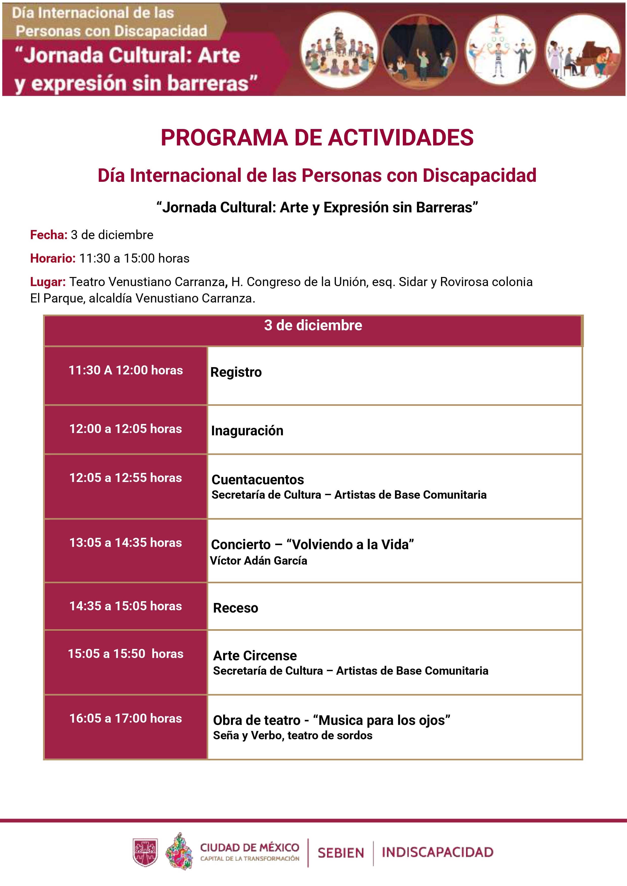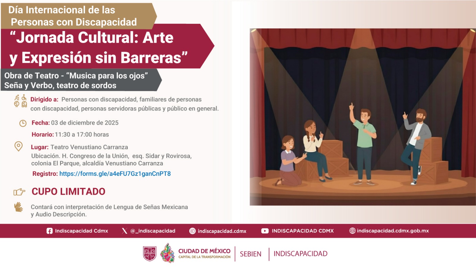 El Instituto de las Personas con Discapacidad de la Ciudad de México (INCAPACIDAD CDMX) extiende una cordial invitación a toda la comunidad sorda, sus familiares, personas con discapacidad en general, personas servidoras públicas y público interesado, a participar en la "Jornada Cultural: Arte y Expresión sin Barreras".