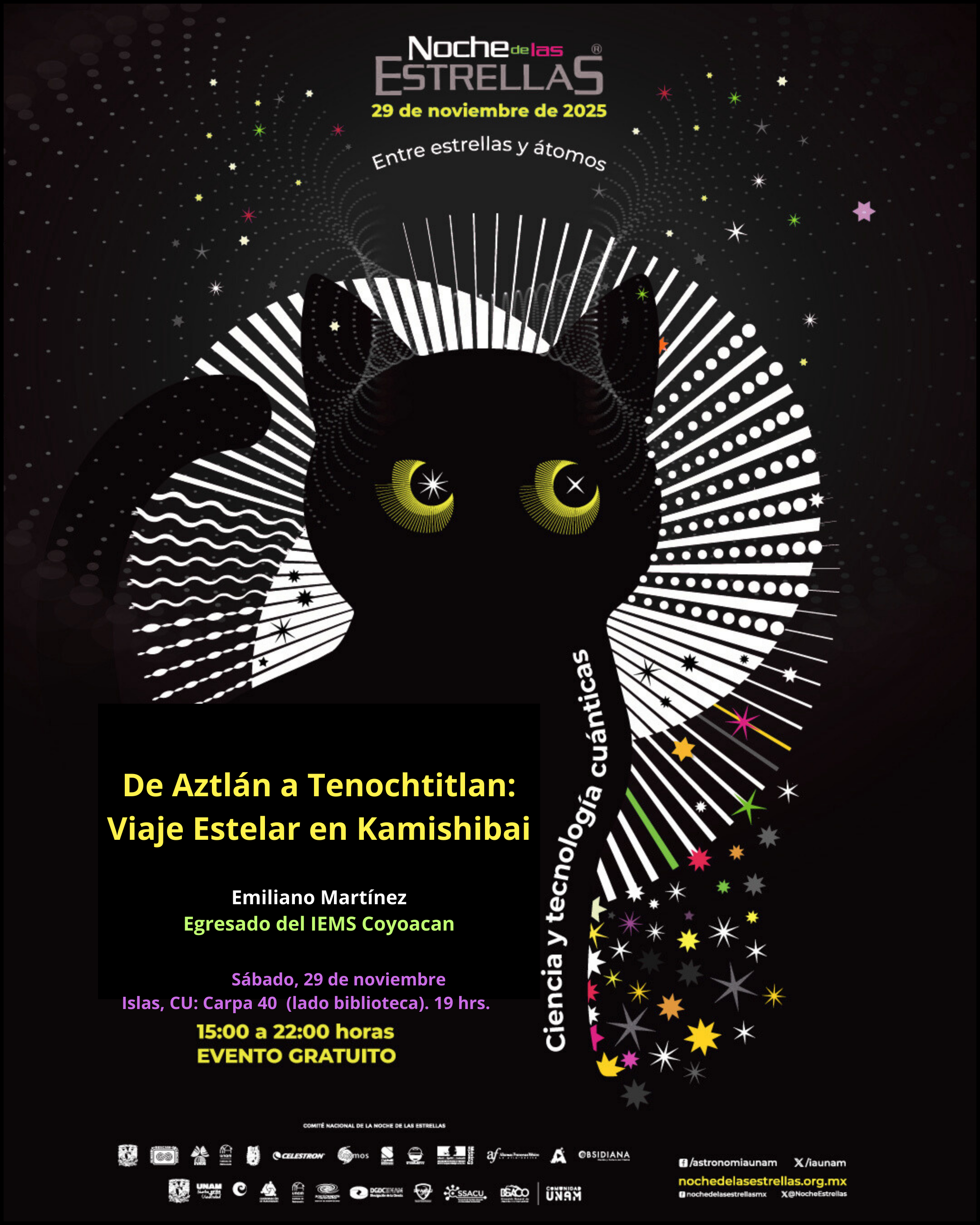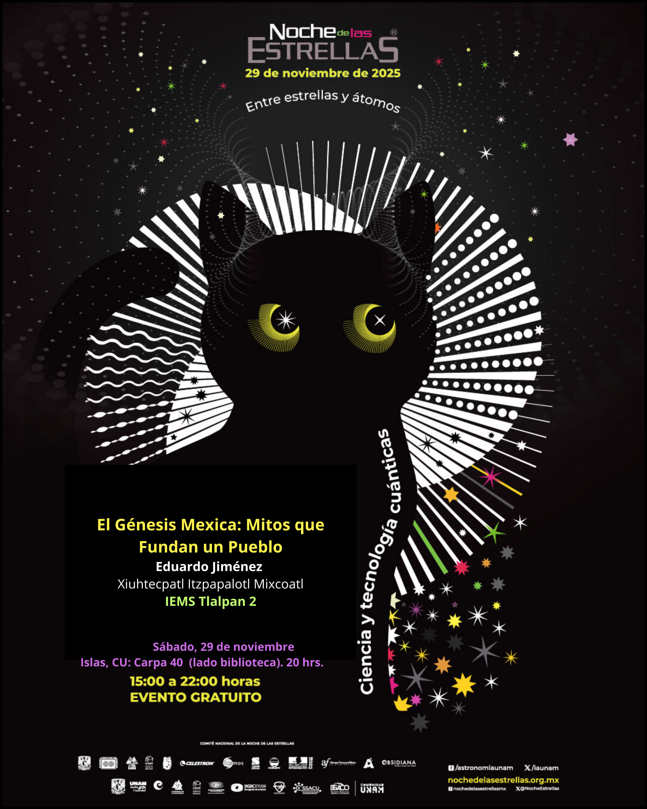 Les invitamos cordialmente a la Noche de las Estrellas 2025, el evento de divulgación astronómica más grande del país, que este año se celebra en el marco de los 700 años de la fundación de la Gran Mexihco Tenochtitlan.